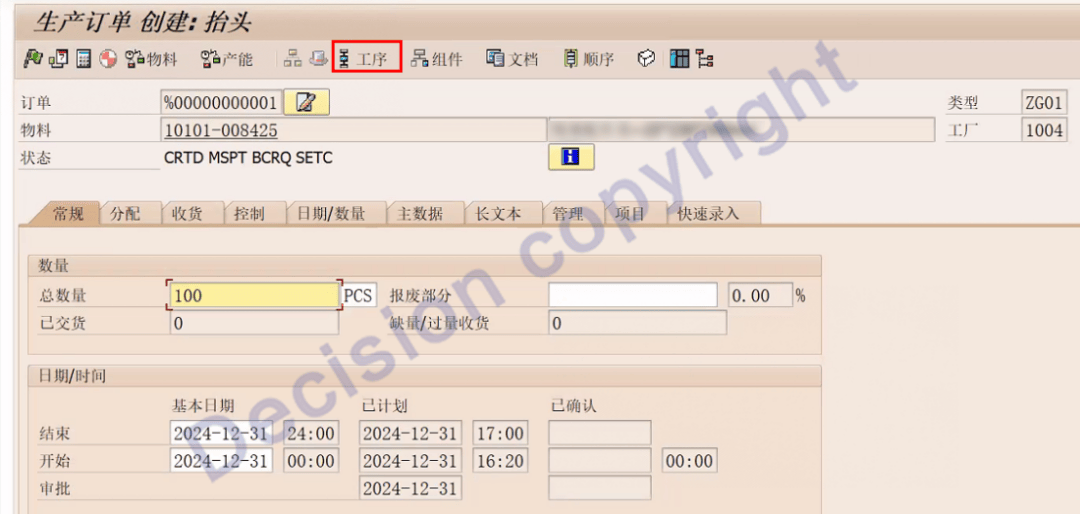 注:本案例为1004生产工厂,使用1702工厂资源,跨公司跨工厂报工。