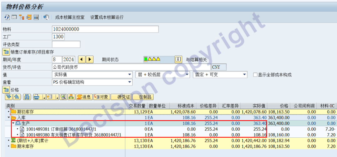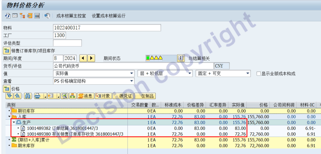 14. Check the cost of the material ledger: the cost allocation of the joint product is correct!