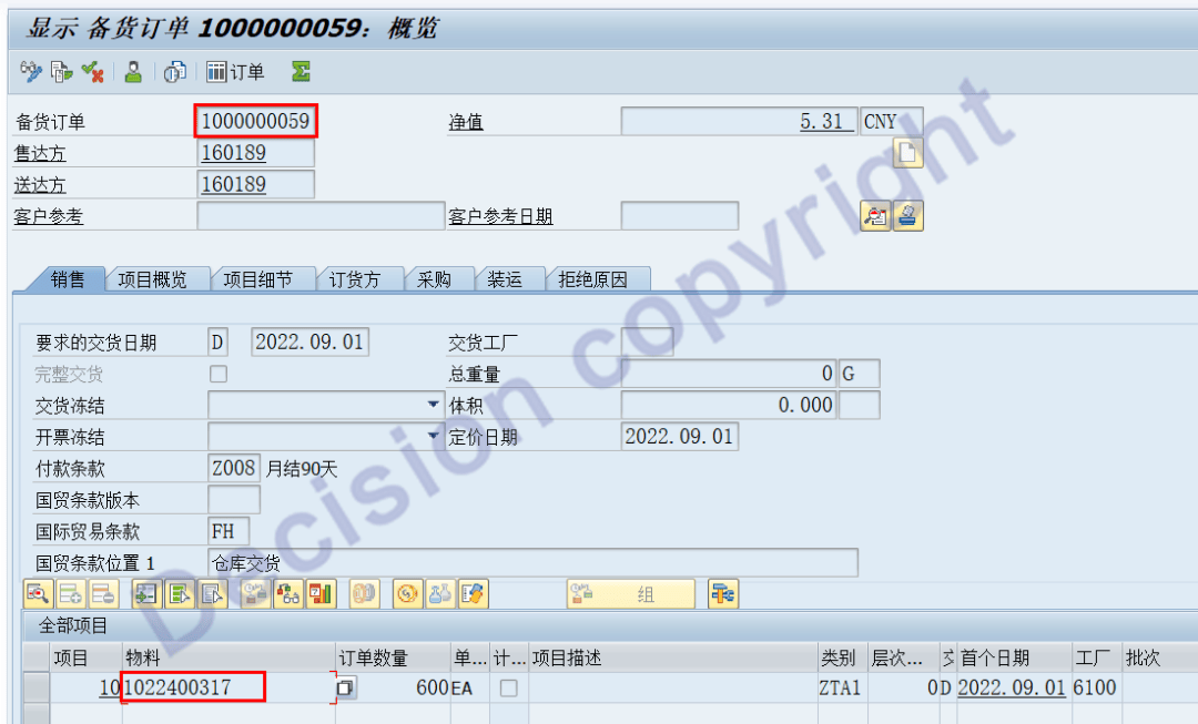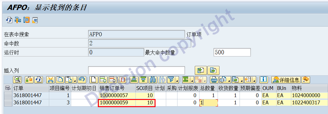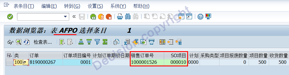 3. At the same time, it is also noted that the relationship between the sales order and the production order is also recorded in the line item: order line item AFPO.