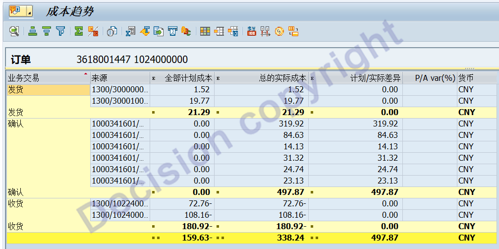 9. View the production order cost as follows:
