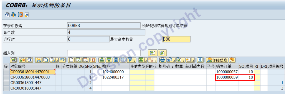 After maintenance, we can see that the newly added line item AFPO table is the same as the main product line item sales order, and the settlement rule COBRB table is the same as the main product line item sales order.