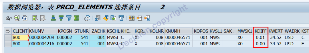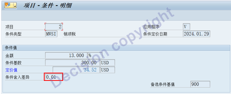 原凭证90001603 第二个行项目,MWSI 条件,有0.01元尾差。