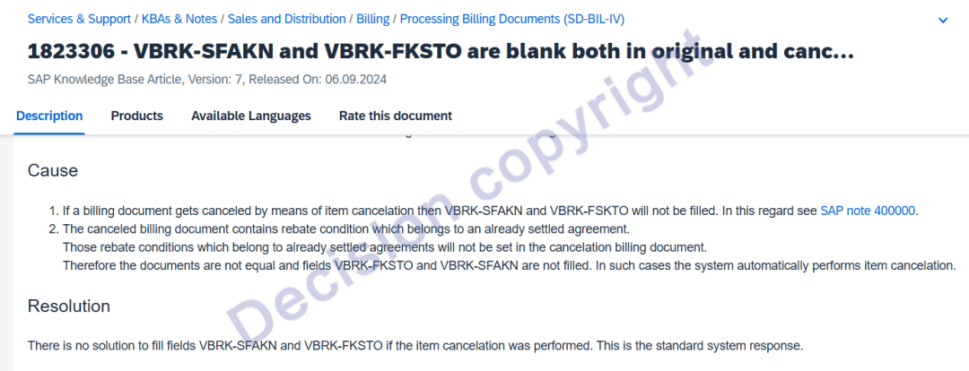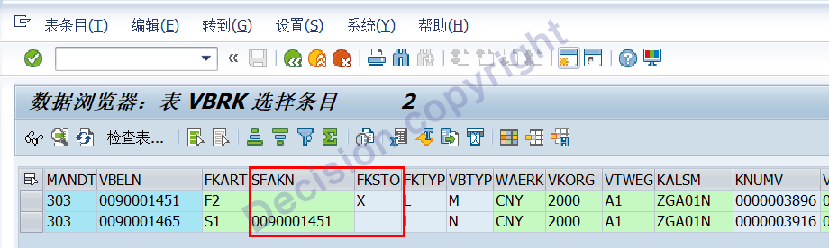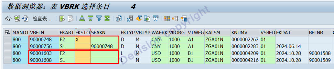 但是发现另外一些冲销,原凭证90001603、冲销凭证90001608,在VBRK表中,冲销凭证号SFAKN冲销标识FKSTO为空,导致很多自开发报表和功能逻辑判断出错,这是什么原因导致?如何处理?