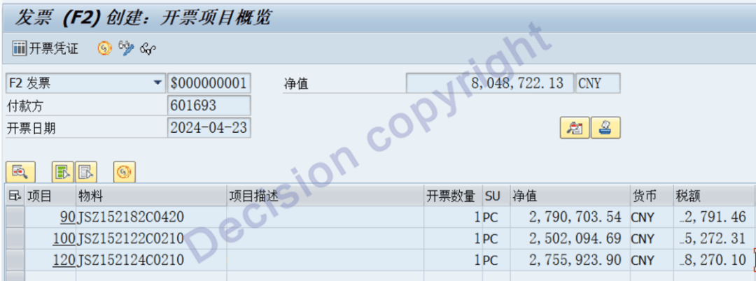 单个开票凭证:每一行单独生成一张销售Billing开票凭证;