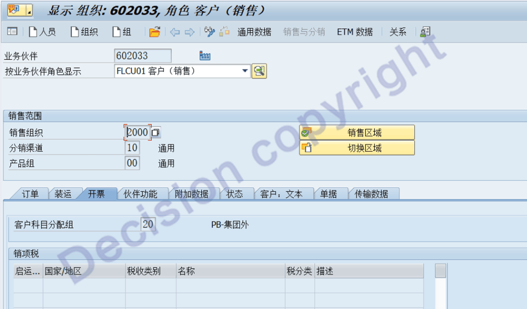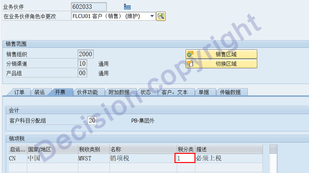 1. 补充维护客户主数据中的税分类,事务码 BP。