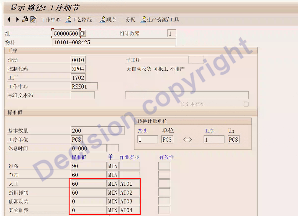标准成本计算事务码CK11N计算产品标准成本时,可以看到标准成本计算状态为绿灯,也取到相应的BOM和工艺路线,但是没有计算出相应的工费金额,只有材料费,这是什么原因?如何处理?