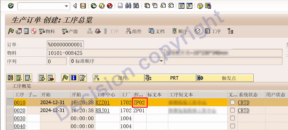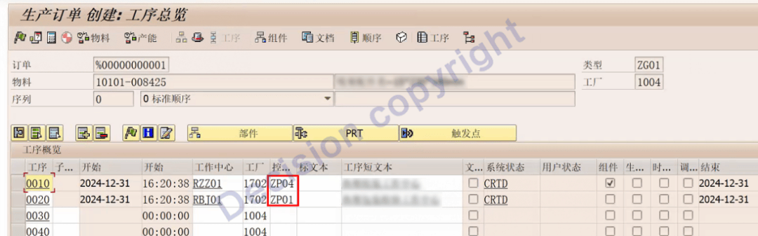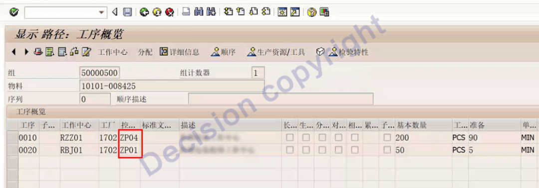 1. 给工序选择正确的控制码,事务码 CA02。