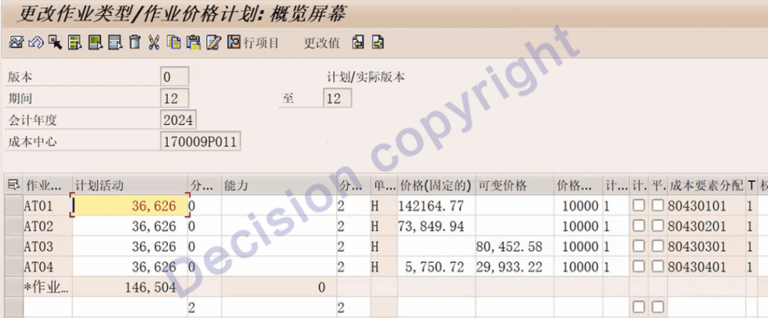 3. 事务码KP26查看成本中心作业价格。