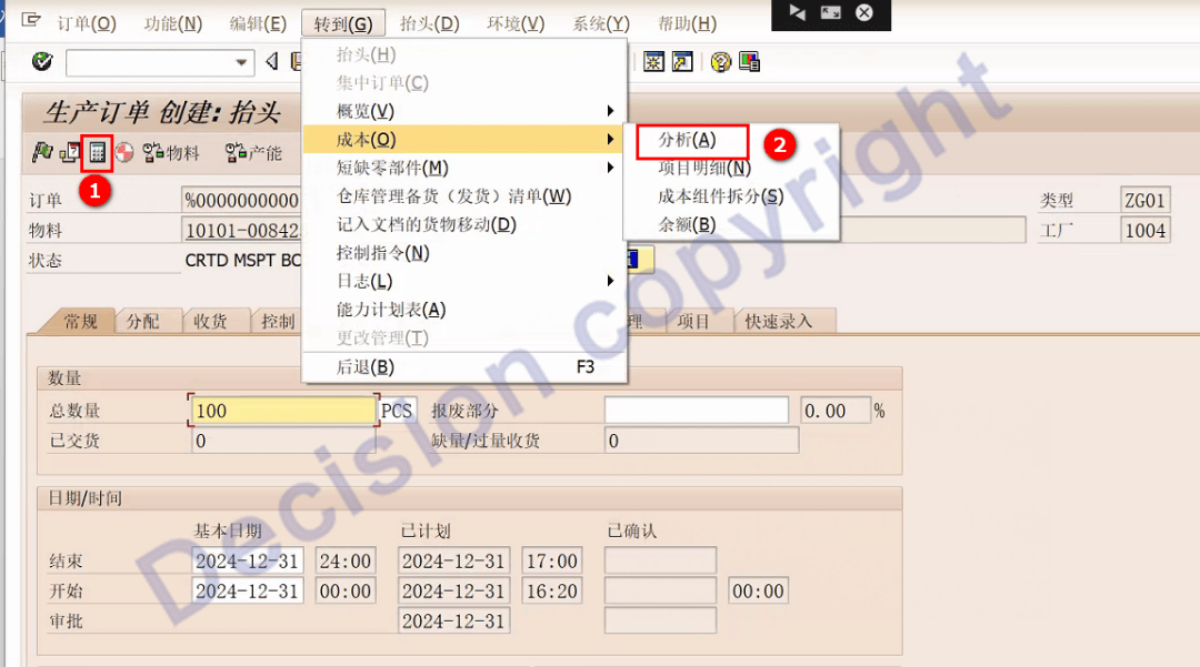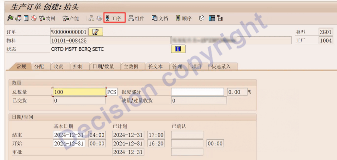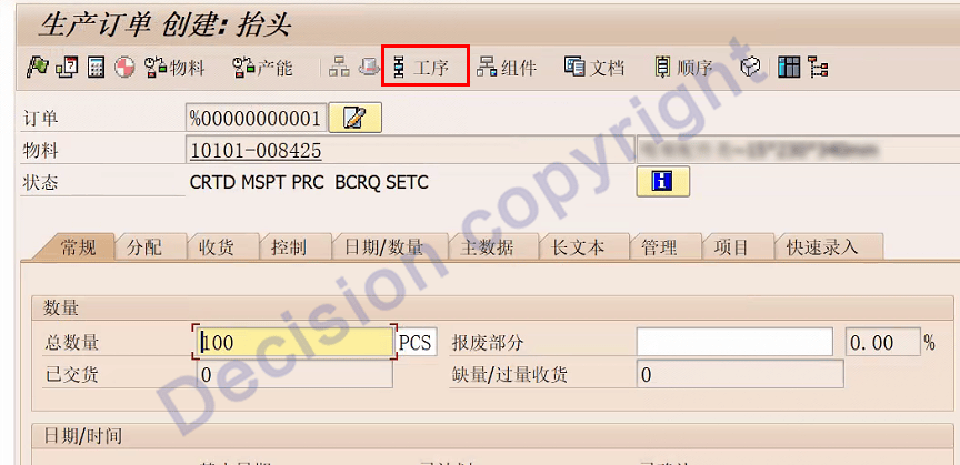 4. 事务码CO01 ,模拟创建工单。