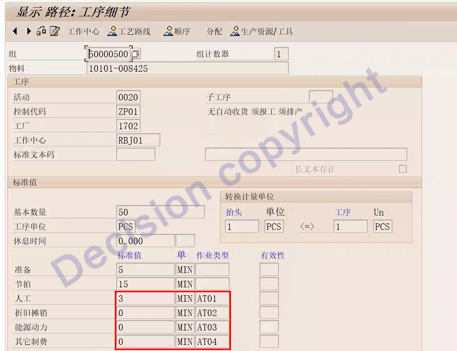 查看到工艺路线中,有效期、标准作业时、基本数量正常。