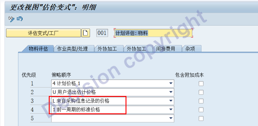 Transaction code OKK4 checks the material price value in four sequences. The standard cost of the previous period is used as a supplement to the information record value.