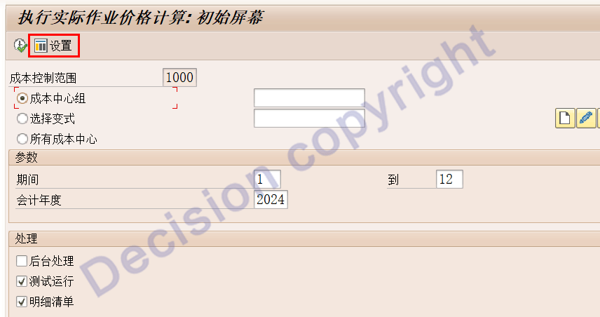 2)事务码KSII , 期末计算生产成本中心作业价格时,先按以下设置,可以提高作业价格精度。