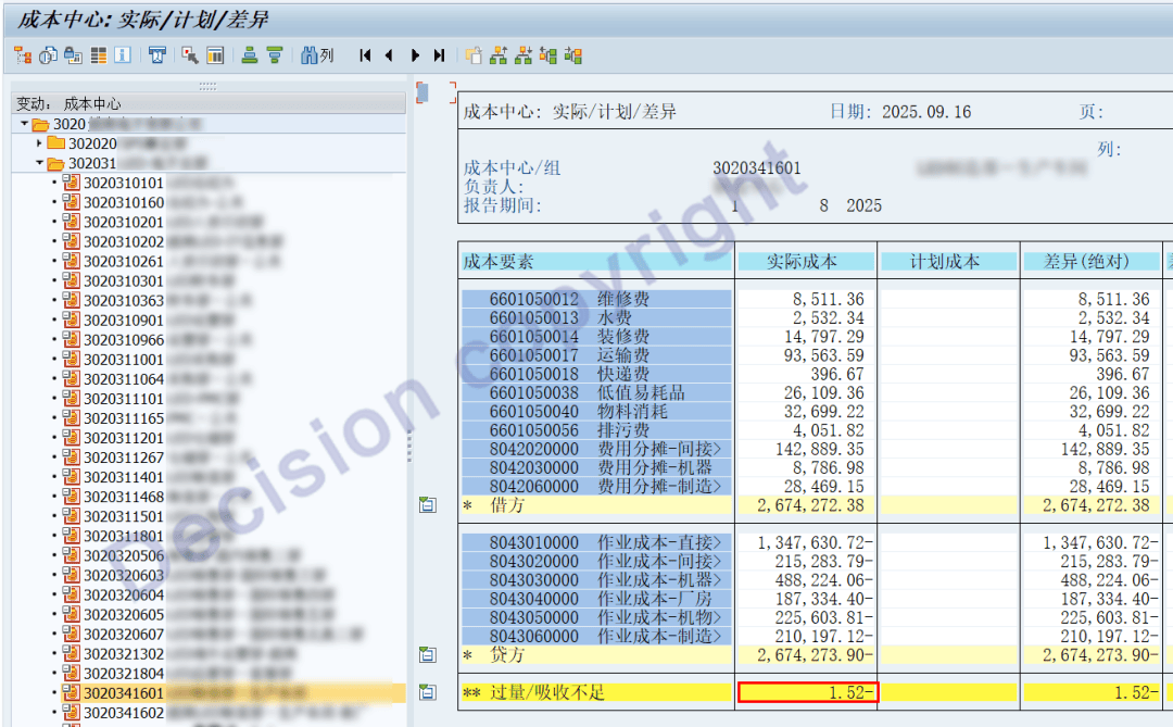 2. 成本月结,首先要考虑的是:生产成本中心对象货币余额为0;其次考虑生产成本中心控制范围货币余额为0;即:优先将生产成本中心对象货币尾差余额调整为 0。
