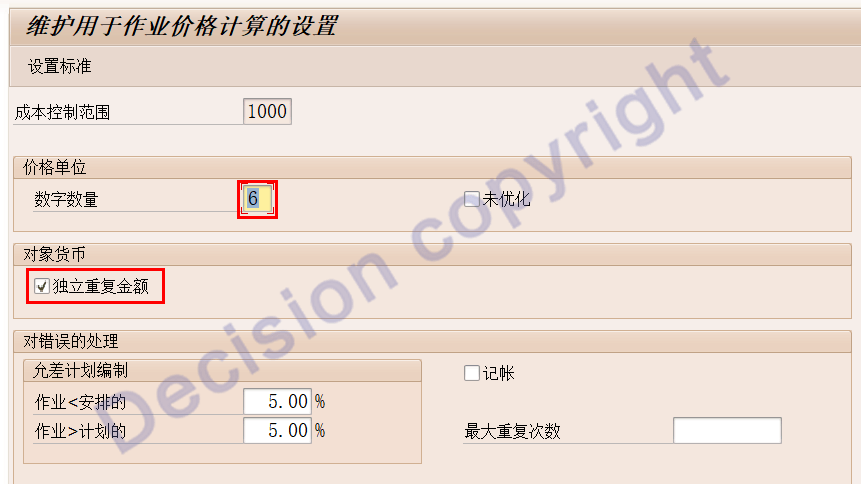 独立重复金额: 建议选择; 即:控制范围货币、对象货币,分别计算作业价格。如果没有选择,系统默认以控制范围货币计算作业价格,然后 折算为 对象货币作业价格。