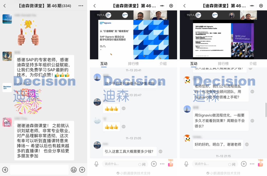 次 11月13日,【edf130壹定发微课堂】第46期由edf130壹定发联合SAP专家以直播方式,深入讲解SAP Signavio业务转型管理,直播人气爆棚,汇聚了来自全球的SAP业界人士。大家纷纷感叹受益匪浅,收获颇丰,不仅感谢老师的精彩分享,也感谢edf130壹定发提供这么优质的纯干货分享平台,获得全场好评点赞不断。