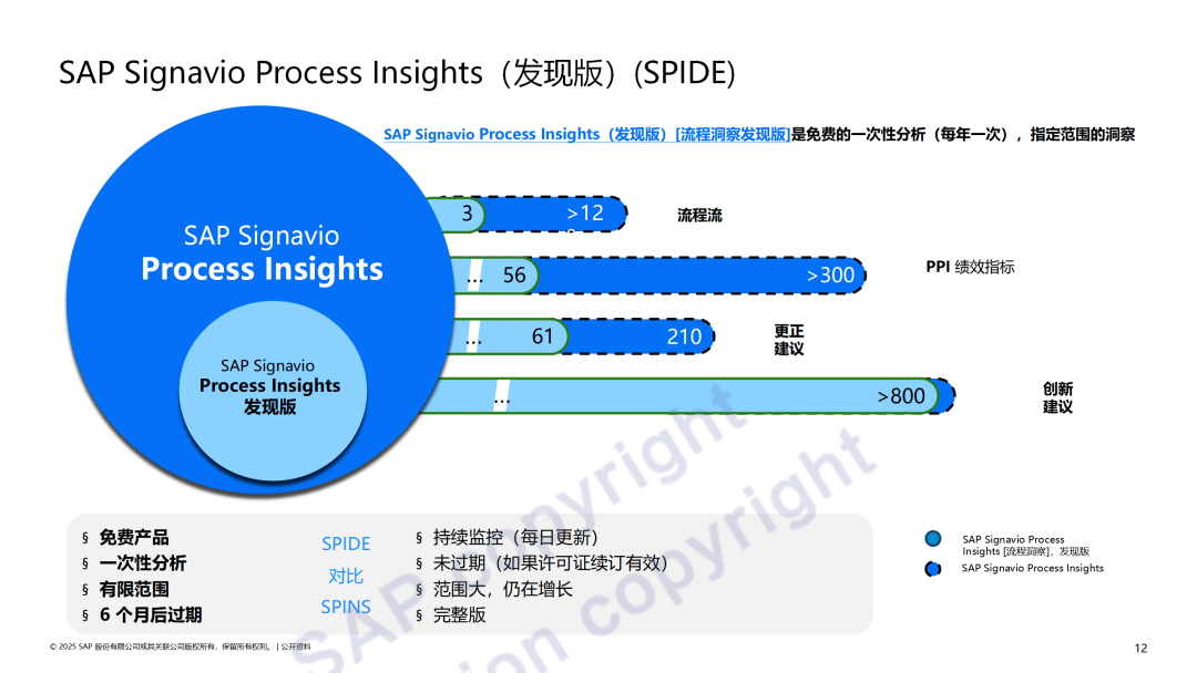 面向SAP ERP或S/4HANA的企业,SAP提供了免费体验版,每年可申请1次,分析3条流程、56项绩效指标、61条改进建议,并生成PDF报告,帮助客户初步了解Signavio的价值。