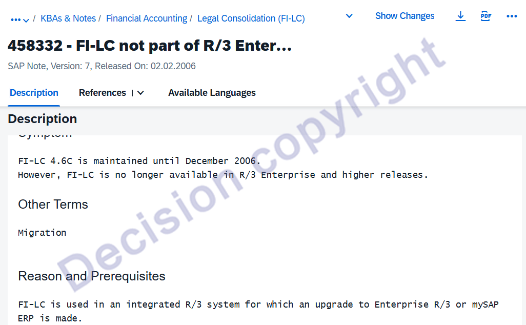 SAP R/3 4.6C 之前的合并,称之为 Financial Accounting Legal Consolidation (FI-LC)。