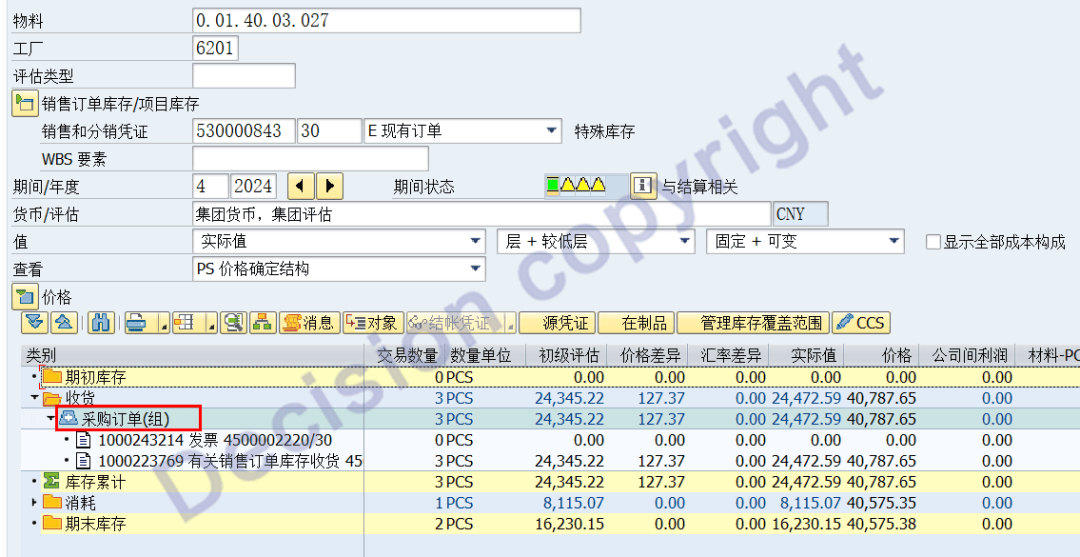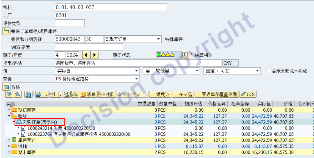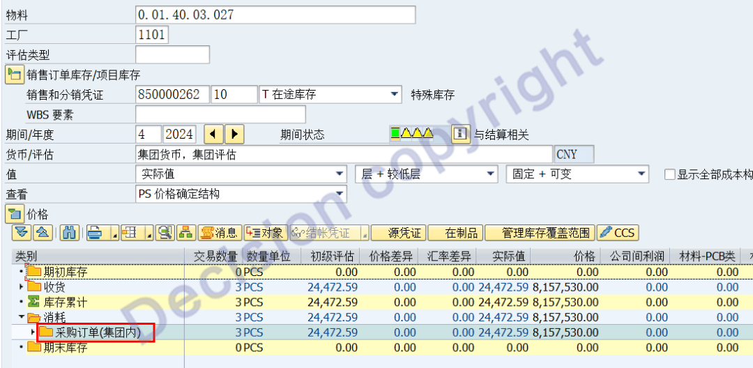 事务码CKM3N画面中的:集团内采购入库、集团内销售出库。