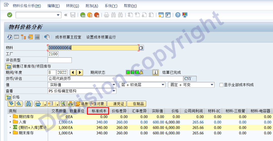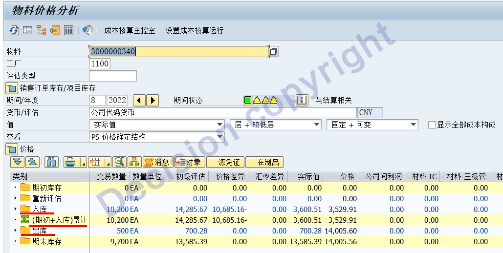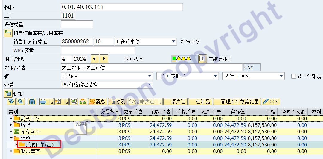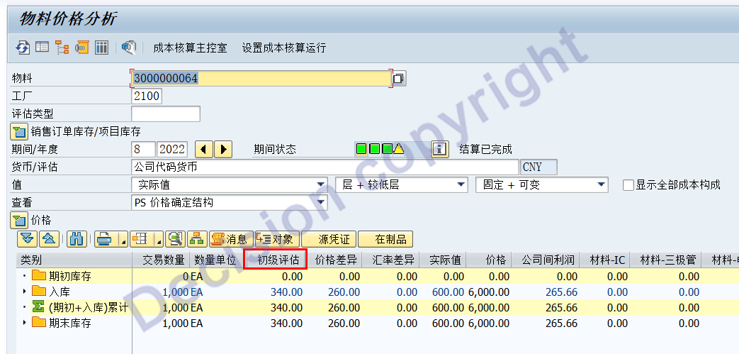 Revaluation of Consumption to Original Account Assignment 原始成本对象的成本差异重估;